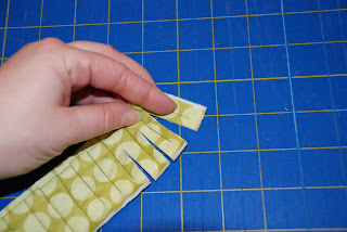 I took a green 6" X 12" and folded it in half. Sew across the top with raw edge to the bottom.