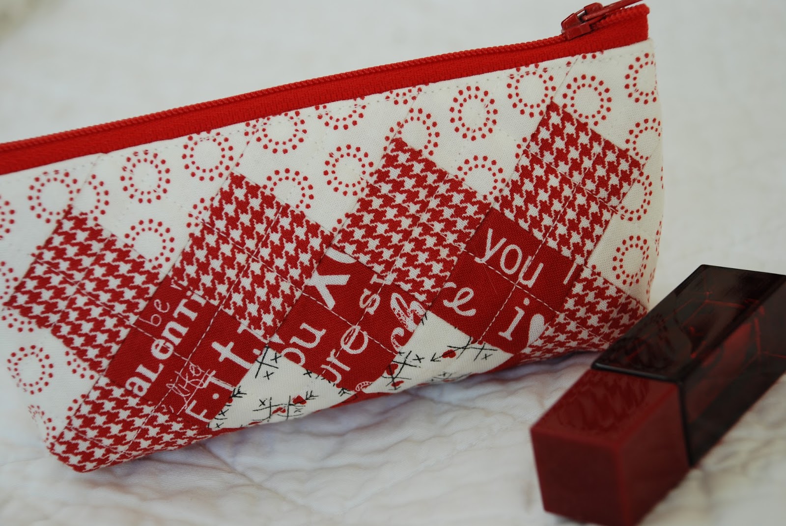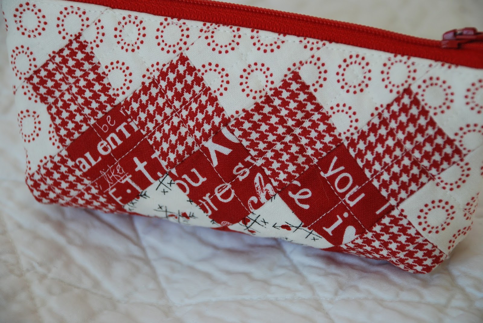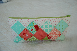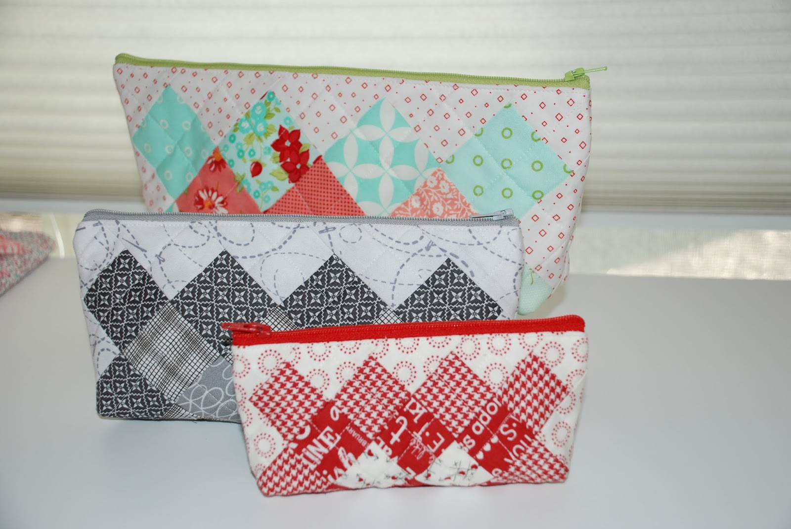 This grey pouch used 2" strips and a mix of fabric from my etsy shop.